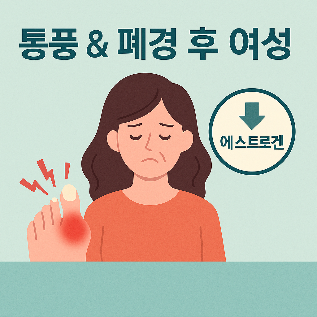 폐경이 되면 여성 호르몬이 급격히 감소합니다. 그 결과 요산이 몸에 쌓이는 속도가 빨라지고, 남성과 비슷한 수준으로 통풍 위험이 높아집니다. 실제로 한 논문에서는 “폐경 후 여성은 남성과 비교해 3~5배 높은 요산 수치를 보일 수 있다”고 보고한 바 있습니다.