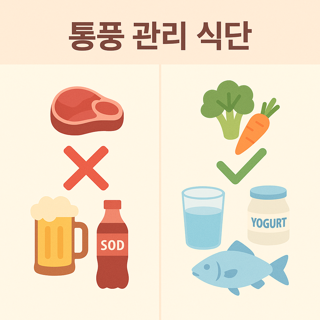 - 충분한 수분 섭취: 요산 배출을 도와줍니다.
