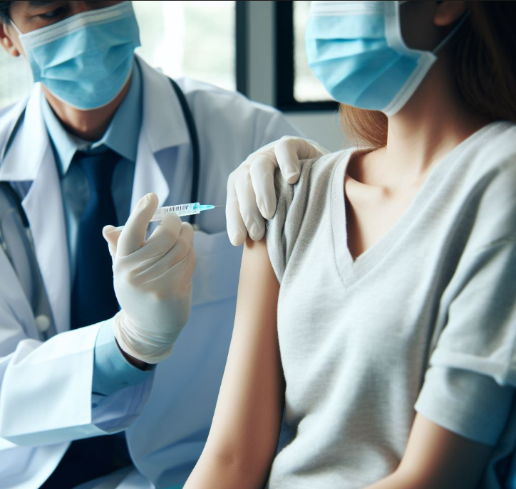병원에서 독감 예방 주사를 맞고 있다