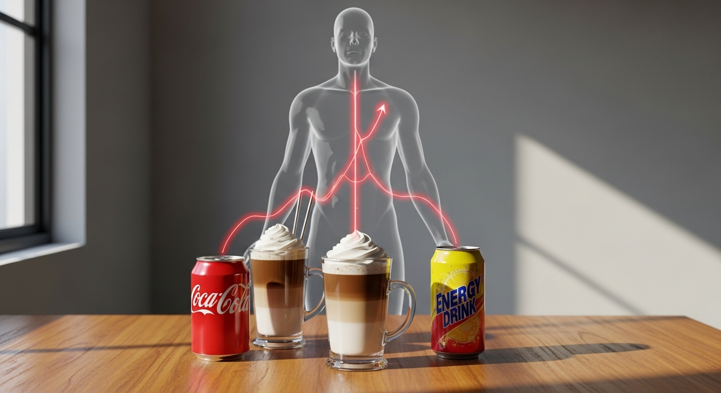 탄산음료, 달콤한 커피, 시럽 라테, 에너지 음료 등은