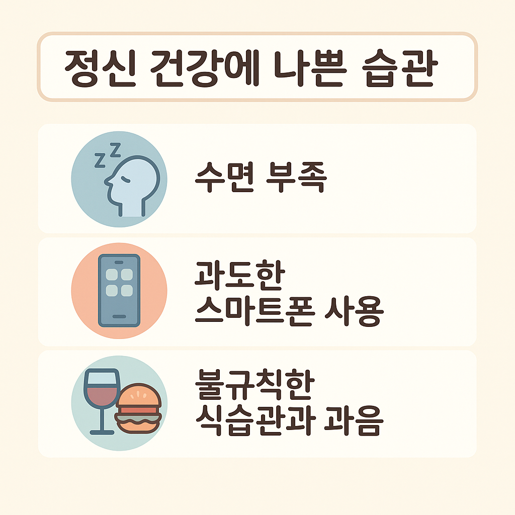 안녕하세요. 만강이입니다. 혹시 요즘 따라 집중이 잘 안 되고, 괜히 짜증이 늘거나 무기력해지신 적 있으신가요? 이런 증상은 단순한 기분 문제가 아니라, 우리가 평소에 가진 습관과 깊은 관련이 있습니다. 오늘은 정신 건강에 영향을 주는 나쁜 습관과 좋은 습관에 대해 전문가의 견해와 연구 결과를 바탕으로 깊이 있게 살펴보겠습니다.